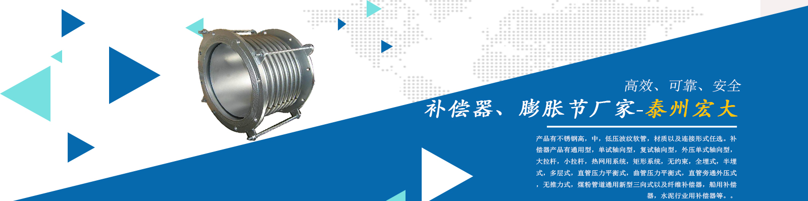 泰州市宏大機(jī)械設(shè)備有限公司是一個(gè)企業(yè)內(nèi)部管理嚴(yán)謹(jǐn),工作作風(fēng)穩(wěn)健,職工素質(zhì)水平較高,經(jīng)濟(jì)實(shí)力雄厚,產(chǎn)品質(zhì)量放心,外部形象良好的企業(yè)。本公司專業(yè)從事補(bǔ)償器廠家,膨脹節(jié)廠家,膨脹節(jié)補(bǔ)償器,其中有不銹鋼高,中,低壓波紋軟管,材質(zhì)以及連接形式任選。補(bǔ)償器產(chǎn)品有通用型,單試軸向型,復(fù)試軸向型,外壓?jiǎn)问捷S向型,大拉桿,小拉桿,熱網(wǎng)用系統(tǒng),矩形系統(tǒng),無約束,全埋式,半埋式,多層式,直管壓力平衡式,曲管壓力平衡…...